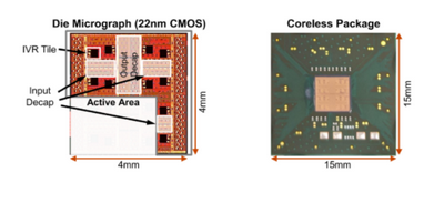 FIVR在基于22nm工艺的裸片上实现,采用三种TSV友好型电感结构,具有多面积与效率的权衡选项。这些很容易并行地构建模块化设计,可以服务于广泛而不同的chiplet。