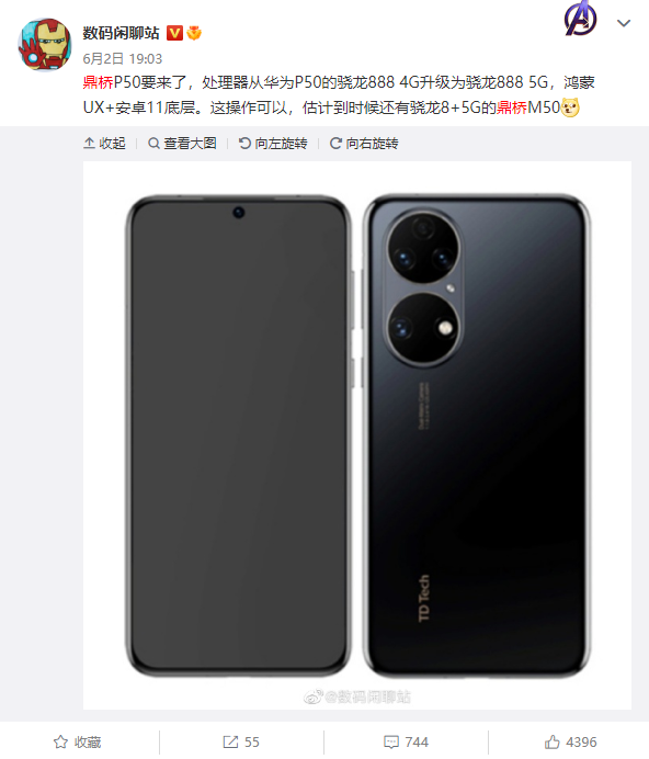 今日,数码博主@旺仔百事通 表示,TD Tech P50应该这段时间就能和大家见面了。另外,博主、经销商@看山的叔叔日前也发文称,自学了TD Tech P50,可以说跟华为P50除了5G,其它几乎一模一样了。