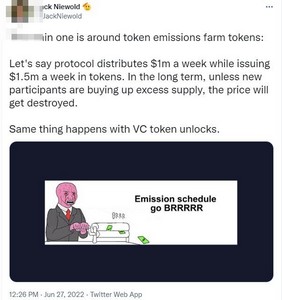 这在很大程度上与 DeFi 的创收问题以及无法建立可持续的国库有关。 高通胀增加了代币供应,如果不能维持代币价值,流动性就会离开生态系统。