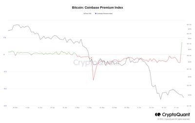 正如链上分析平台 CryptoQuant 所指出的,所谓的“Coinbase Premium”在 6 月 30 日两个月来首次回到正值区域。