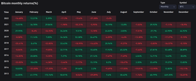 BTC/USD 月度收益K线走势图。 资料来源:Coinglass