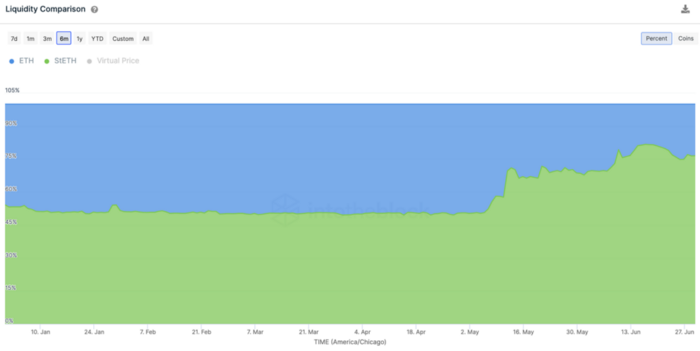- 这进一步降低了价格并导致 Curve 矿池中的流动性提供者撤回他们的 ETH 以避免过多暴露于 stETH