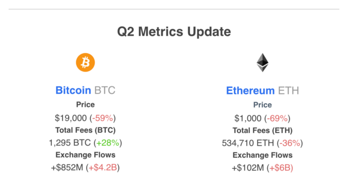 - 由于波动期间需求增加,第二季度比特币费用增加