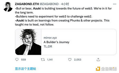 愿景不光是项目方对于项目的规划,更应该是你对项目的期待。你可以因为喜欢 Azuki 的东方元素而购买它,可以因为对 Mfers 的躺平文化有感触而购买它,可以钦佩 Moonsbirds 的创始人有头脑而去参与,亦或是仅仅判断某个项目有升值空间而入场。