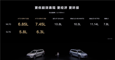 在发布会上,余承东霸气对比BBA的景象也引发了热议,他表示AITO问界M7在WLTC工况下,AITO问界M7后驱版油耗仅为6.85L,四驱版油耗也只有7.45L。