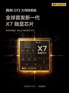 真我GT2大师探索版将于7月12日正式登场。此前官方预热称新机将“探索电竞体验巅峰”,可以看出GT2大师探索版将在游戏体验上有较大升级。