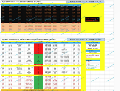 根据苏姿丰去年的主题演讲,AMD Genoa 处理器应该有多达 96 个核心,基于 Zen 4 架构,使用台积电 5nm节点。它们的密度和功率效率应该是之前系列米兰的两倍,整体性能提高 25%。国内知名数码博主@结城安穗-YuuKi_AnS透露了一个包含 18 个型号的电子表格。