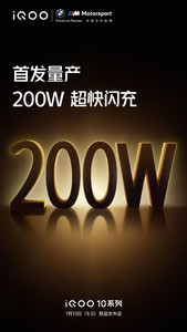 iQOO 10 系列官宣首发量产 200W 超快闪充