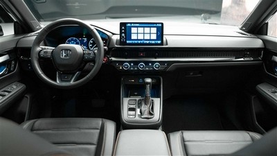 进入到车内就会发现,全新CR-V的内饰彻底变了,内饰布局与全新思域为“同款”,换装悬浮式液晶中控屏,使用水平贯穿式蜂窝状空调出风口,与此前车内布局差异巨大。
