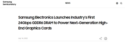 速度飚到24Gbps 三星最快GDDR6显存开始出货
