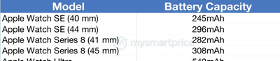 文件还证实,除了 Apple Watch Series 8 配备与 Series 6 和 7 相同 CPU 之外,新款 Apple Watch还共享相同的电池容量。41 毫米 Series 8 的电池容量为 282mAh,而 Series 7 的电池容量为284mAh。电池尺寸的差异很小不太可能引起注意。45 毫米 Series 8 也与 45 毫米 Series 7 共享相同的电池容量。