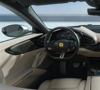 而在内饰方面,新车采用了法拉利最新的数字化座舱设计,将配备全液晶仪表盘,副驾驶前方也加入了一个全液晶显示屏,中控中央部分则是内嵌了一个触摸式的空调控制面板。