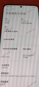 从图中可以看到,这明显是一款工程机,手机中还有数字水印,运行基于 Android 13 的 MIUI 14 0818.001 开发版,配备 12GB内存,采用居中挖孔曲面屏。