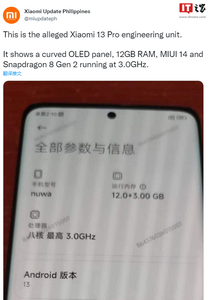 9 月 19 日消息,近日,名为 Xiaomi Update Philippines 的推特账户晒出了一张图片,展示了一款搭载 MIUI 14的手机,该账户称新机为小米 13 Pro。
