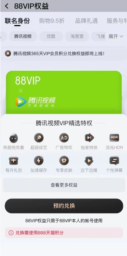 阿里巴巴 88VIP 正内测接入腾讯视频会员 预计双十一前上线