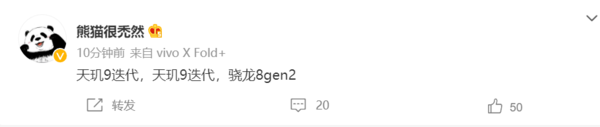 据知名数码博主@熊猫很禿然 最新发布的信息显示,与此前曝光的消息基本一致,全新的vivo X90系列将有望提供X90、X90 Pro和X90Pro+三个版本,分别将搭载天玑9迭代(天玑9000+)、天玑9迭代(天玑9000+)和骁龙8Gen2三款芯片。结合此前相关爆料,天玑9000+旗舰处理器是联发科迄今为止最强悍的手机Soc,基于台积电4nm工艺制程打造,对标的是高通骁龙8+。而骁龙8Gen2的CPU性能要比骁龙8+提升10%、能效提升15%,GPU性能提升20%,AI性能提升多达50%,另外ISP性能也将提升不少。