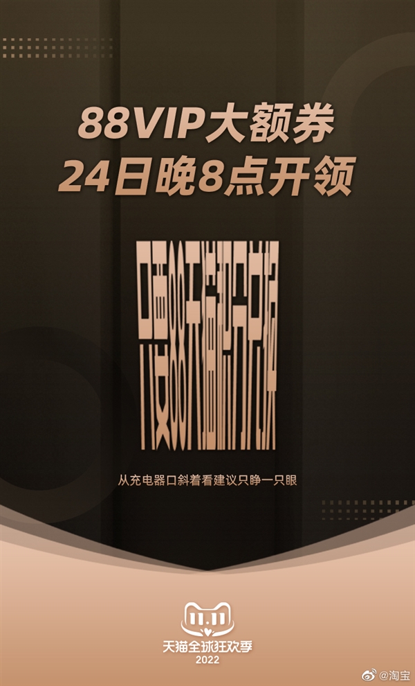 今日消息,淘宝官方微博预告,今晚8点双11正式开启,消费者可以领取88VIP大额优惠券,不需要888天猫积分。