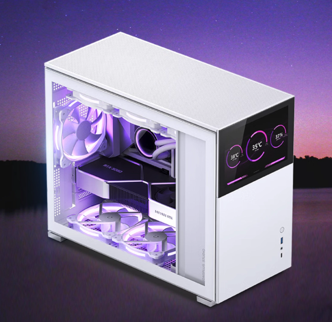 IT之家了解到,这是一款 MATX 机箱,支持 360 冷排。这款机箱的主要特色在于正面这块 800p 分辨率屏幕,需连接到主板或显卡的 HDMI接口。
