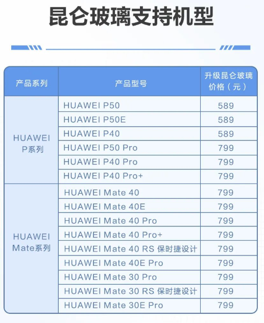 10倍耐摔 华为昆仑玻璃升级来了 支持Mate 40等15款机型 589元起