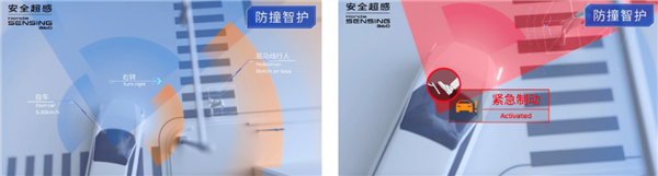 比如防撞智护、穿行先知、变道后卫等功能,通过硬件的实时检测来对意外情况进行预警,降低事故发生的风险。