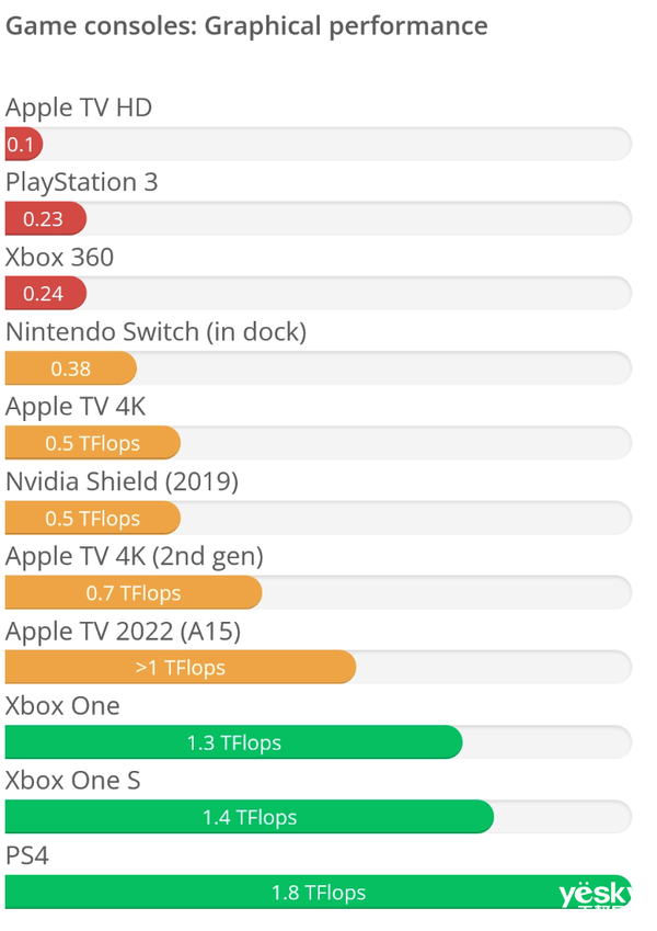 但是在图形性能方面,虽然第三代Apple TV 4K的图形性能在1 TFlops左右,画面多少有点模糊,并且由于没有适用于第三代Apple TV 4K的测试软件,在图形性能方面无法准确反映出第三代Apple TV 4K的具体性能。