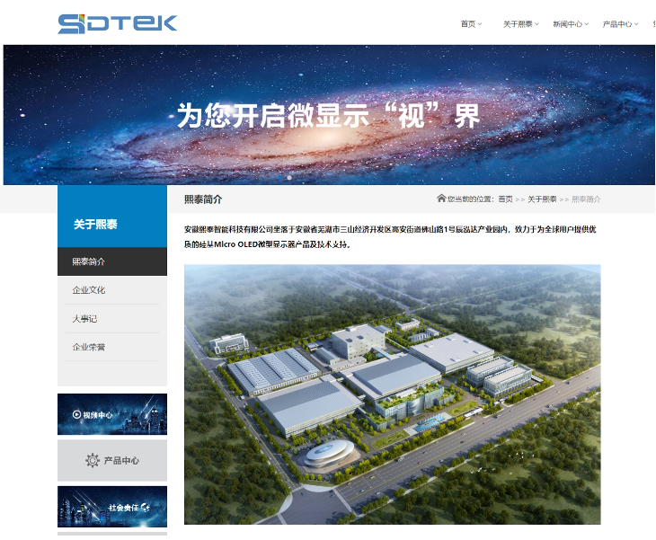 IT之家了解到,官网介绍称,安徽熙泰智能科技有限公司致力于为全球用户提供优质的硅基 Micro OLED 微型显示器产品及技术支持,开发了新型阳极、高性能 OLED 器件、高可靠性薄膜封装、高精度真空贴合等关键专有技术。