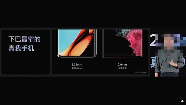 真我10 Pro+则配备了亿元定制旗舰曲面屏,采用定制旗舰级COP Ultra封装工艺,下巴部分仅2.33mm,比上万元的三星Galaxy S22 Ultra(2.6mm)还要窄了不少。