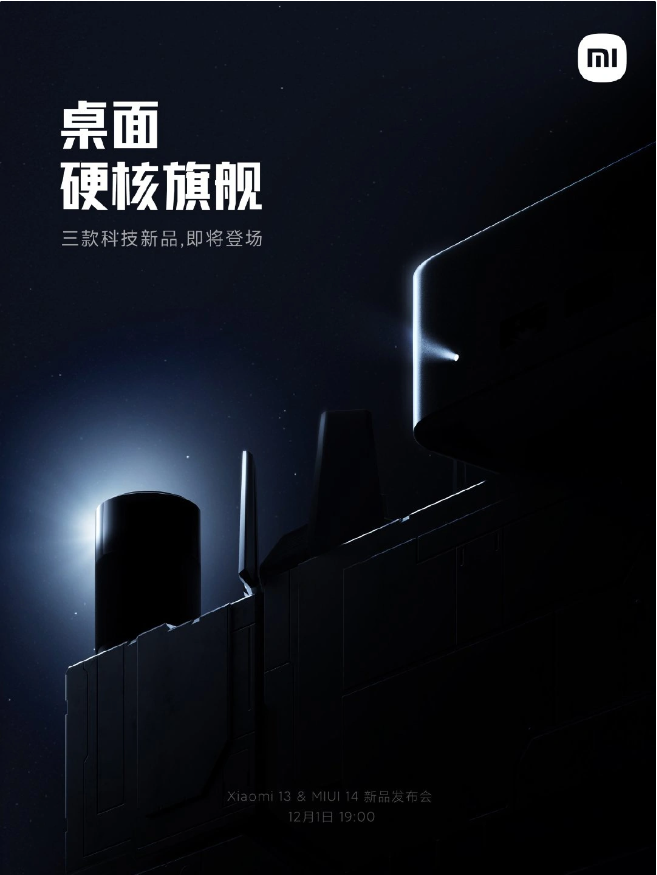 11 月 28 日消息,小米官方今日宣布,小米 13 系列 & MIUI 14 新品发布会正式定档 12 月 1 日(周四)晚七点。这次除了小米 13 系列、小米 Buds 4 半入耳旗舰降噪耳机、小米智能手表 S2 之外,还有 3 款 IOT 桌面新品: