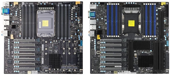 以上两块主板,分别是超微支持三代可扩展至强(LGA4189)的X12SPA-TF、支持二代可扩展至强(LGA3647)的X11SPA-TF,可以看出无论产品命名还是布局设计,都如出一辙,延续性非常好。