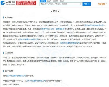 2021年7月,深圳市快播科技有限公司管理人破产民事裁定书公开。快播公司破产财产分配方案已执行完毕,法院终结其破产程序。