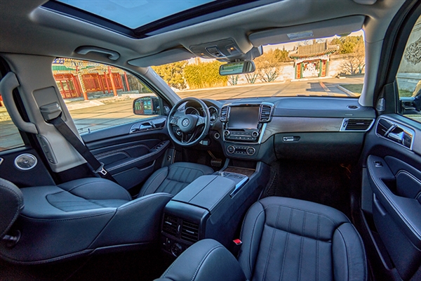 至于内饰,明眼人一看就知道它有很多设计就是参考了上一代奔驰GLS,比如双炮筒形状的指针式仪表盘,此外,该车还配备了三辐式多功能方向盘,中控中央采用内嵌式的多媒体触控屏,中体中控台设计非常沉稳,而深色木纹装饰的使用增强了豪华感,当然也带来了些许油腻。