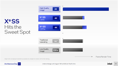 据悉,XeSS技术能够通过Intel Arc显卡内置的XMXAI引擎,实现基于AI加速的高性能超级采样技术,以接近原生分辨率的质量对图像进行合成。