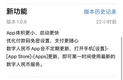 数字人民币App 1.0.9.0更新来了 升级64位体积更小