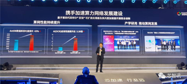 亚信科技首席科学家叶晓舟表示,亚信科技正与Intel基于其第四代至强可扩展处理器及其内置加速器开展联合创新,算网性能得到的持续提升。对比上代产品,AntDB数据库吞吐量提升了43%;AI(OCR)应用性能提升达3.38倍。