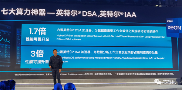 3,第四代至强内置了Intel数据流加速器(DSA),提高了存储、网络和数据密集型工作负载的性能,让数据密集型工作负载操作性能提升1.7倍。