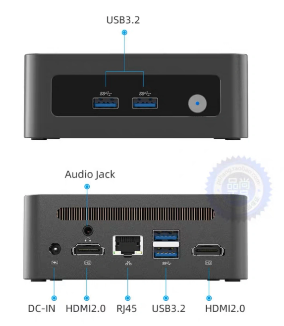 这款迷你主机尺寸为 113*106*42mm,0.5L 体积,支持安装 32GB DDR4-3200 笔记本内存,可安装 M.2 2280 PCIe 3.0 SSD 和 M.2 2242 SATA SSD,内置静音风扇 + 全铜散热片。接口包括 USB-A、HDMI、2.5G 有线网口等。