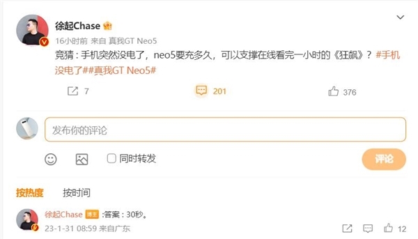 2月9日见 真我GT Neo5首发240W满级秒充 手机闪充进入读秒时代