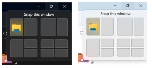 IT之家了解到在这个版本中还有一个新的实验性 UI,用于下拉菜单,当悬停在应用窗口的最大化按钮上时出现。这些实验包括在突出显示的 Snap 区域显示应用图标,以及加入“Snap 此窗口”的文字,使用户更清楚这个界面的作用。