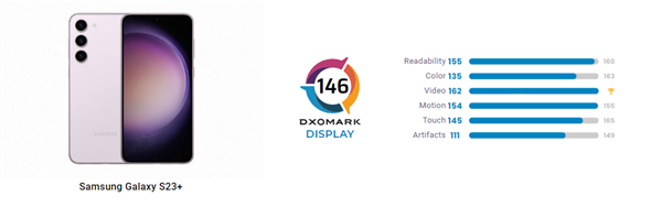至于Galaxy S23+,该机DXOMARK屏幕测试总分为146分,全球屏幕排行榜中排名第六。