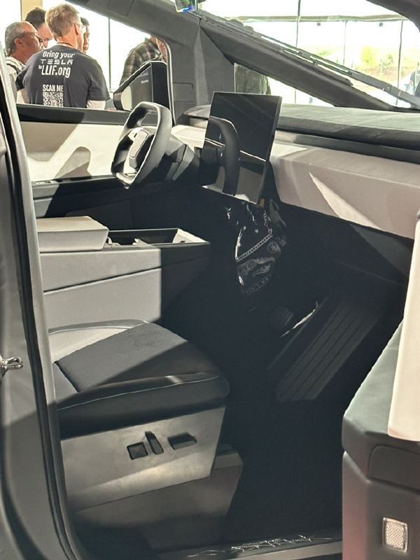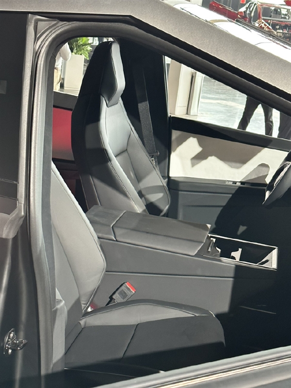 至于内饰,不同于以往的谍照,最新版本用上了传统造型的方向盘,中控屏尺寸巨大,视觉效果惊人,但依旧没有仪表盘,同时主副驾驶之间的手台似乎也变成了固定样式。