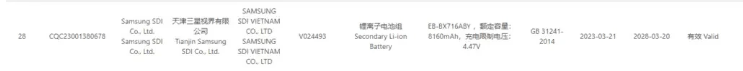 三星 Galaxy Tab S9 通过3C认证 电池容量提升至8160mAh