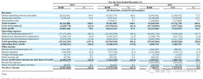 拼多多2019年、2020年、2021年营收分别为301.42亿元、594.9亿元、 939.5亿元(约147.43亿美元);毛利分别为238亿元、402亿元、622.32亿元(约97.66亿美元)。