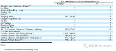 拼多多股权曝光 黄峥持股27.9%腾讯持股15.5% 红杉减持