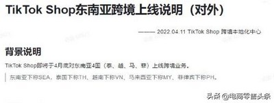 最近,TikTok Shop官方发布消息,宣布将于4月25日在东南亚4国(泰、越、马、菲)开展跨境业务。之后将在4月30日,在这4大站点商家开放直播、发短视频挂车、交易履约、逆向退款等功能。