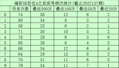 百位杀号:上期百位开出号码4,历史上百位号码4已开出701次了,最近100次百位号码4出现之后,其下期各号码频次分别为:号码7出现13次,0、6出现12次,8、9出现11次,3出现10次,4出现9次,1、5出现8次,2出现6次。