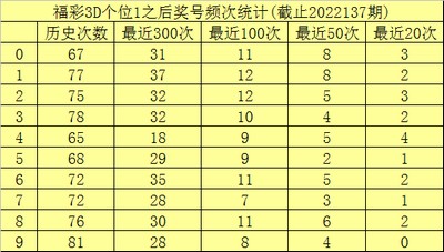 个位杀号:上期个位奖号为1,历史上个位奖号1共开出732次,最近100次个位奖号1出现时,其下期号码0-9开出次数分别为:奖号1、2开出12次,0、6、8开出11次,3开出10次,4、5开出9次,9开出8次,7开出7次。