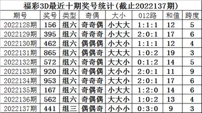 甜瓜福彩3D第2022138期推荐 十位关注重号