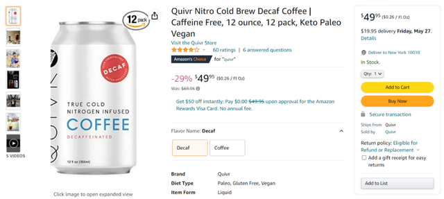 (图:Quivr硝基冷萃咖啡的listing)