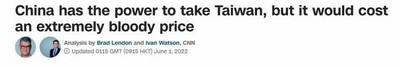 美媒在这之后提出一个警告;称尽管大陆会获胜,但任何胜利都将造成大陆或台湾付出高昂的代价。解放台湾的军事行动要比二战时期的诺曼底登录要复杂的多,而3个月的诺曼底战役造成双方伤亡达50万。
