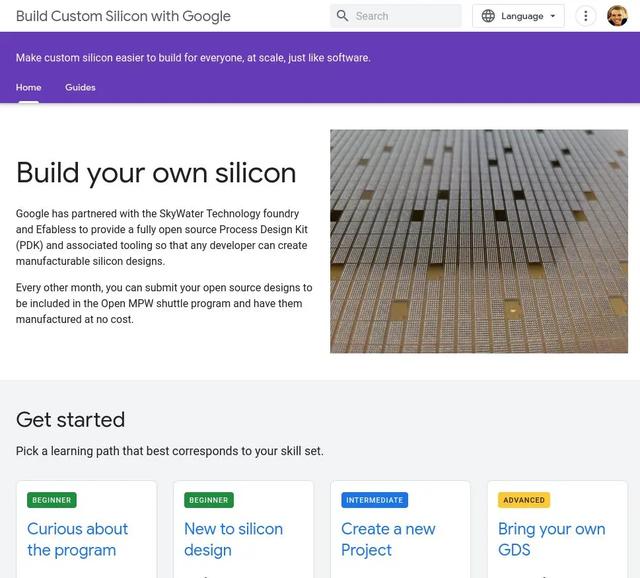 为了帮助小型开源项目进行芯片制造,Google 不仅承担了相关费用,而且还和 SkyWater Technology 合作,提供了开源工艺设计套件(PDK)。虽然该芯片制造是在 130 纳米工艺(SKY130)上完成的,但对于资金有限的开源硬件项目是一个很大的成功。今天,Google 推出了全新网站,帮助你创建自己的芯片。